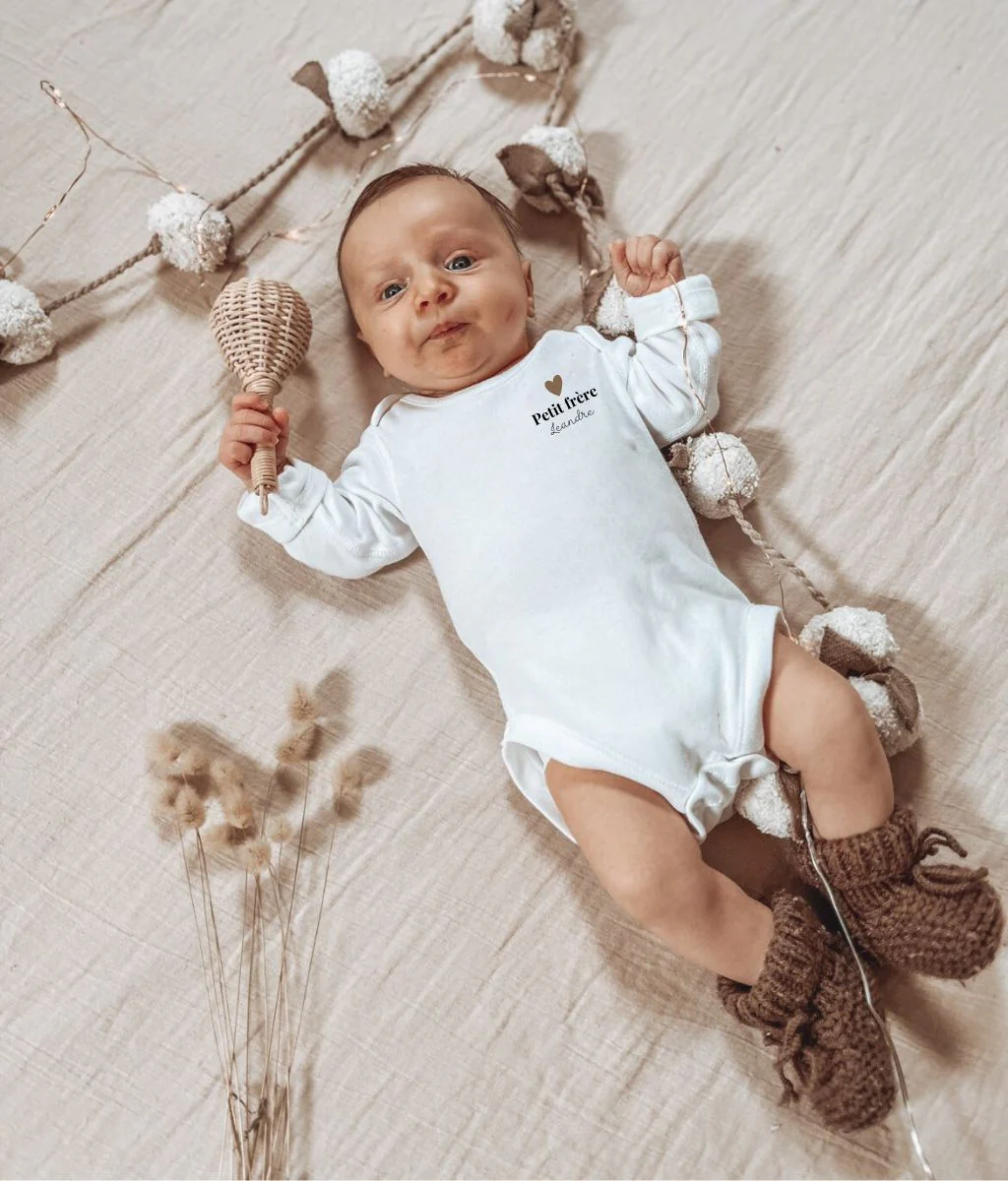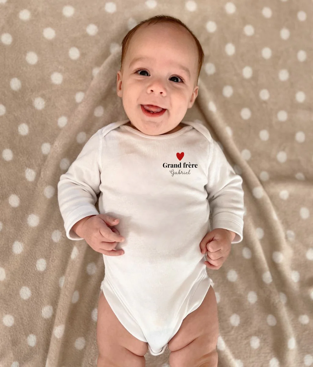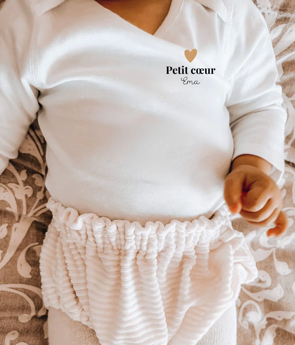 Notre body Henri pour bébé dévoile une douce inscription remplie d’amour. Choisissez l’inscription de votre choix et personnalisez ce body avec le prénom de votre enfant ou un petit mot doux. A associer avec notre t-shirt Camille pour un look matchy !