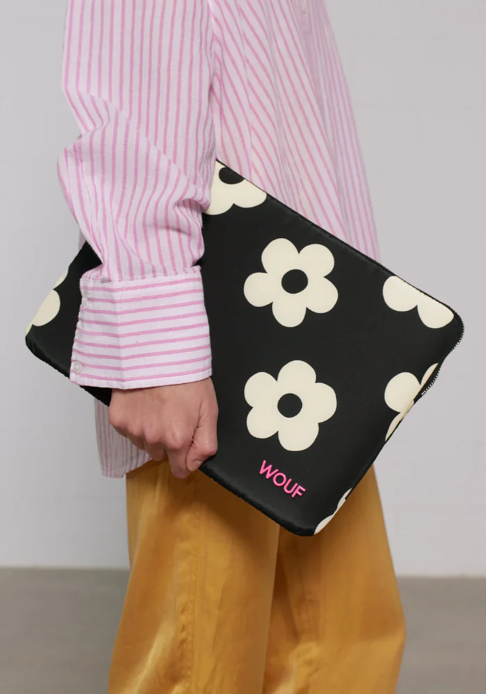 Caractéristiques : Composition : 100 % polyester recyclé à partir de bouteilles en plastique post-consommation. Compatible : MacBook Pro 15″ depuis 2016 MacBook Pro 16″ depuis 2019 MacBook Air 15″ depuis 2023 Finition déperlante Étiquette en cuir recyclé Tirette personnalisée Wouf, en aluminium Zip YKK avec côtés en polyester recyclé Imprimé avec des encres certifiées […]