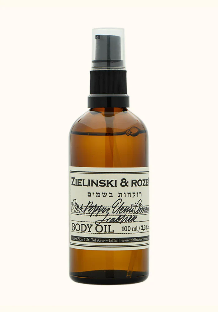 Huile pour le corps Poivre rose, élémi, cannelle et cuir en 100ml.