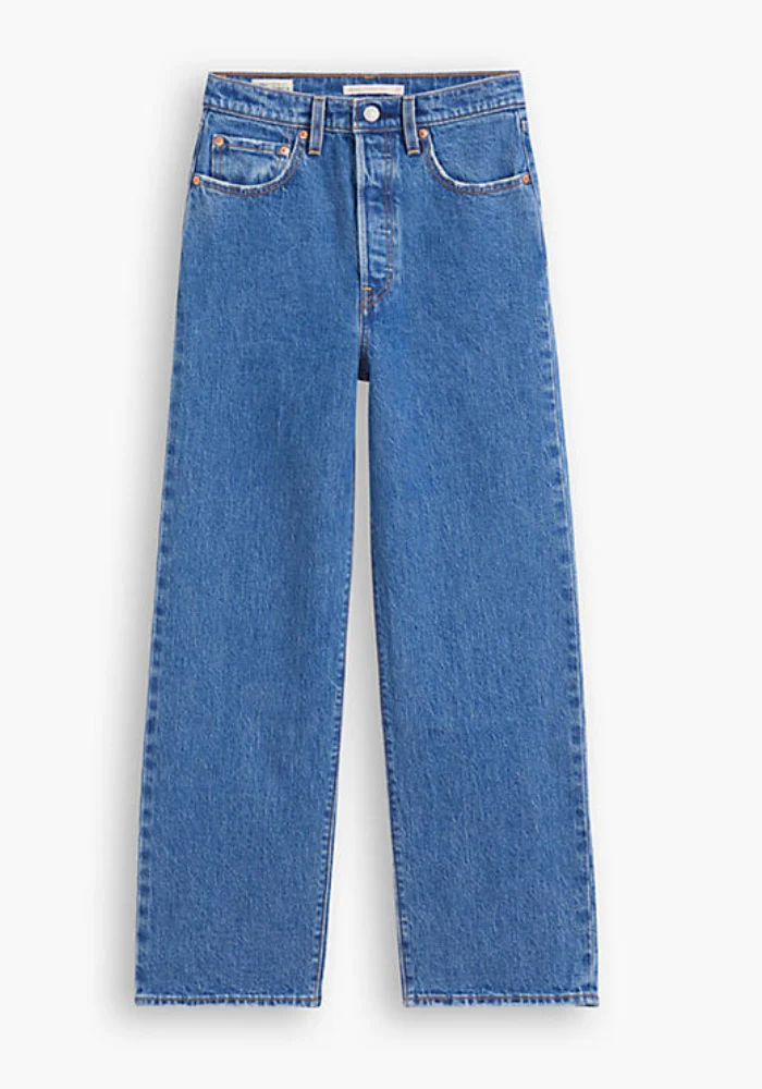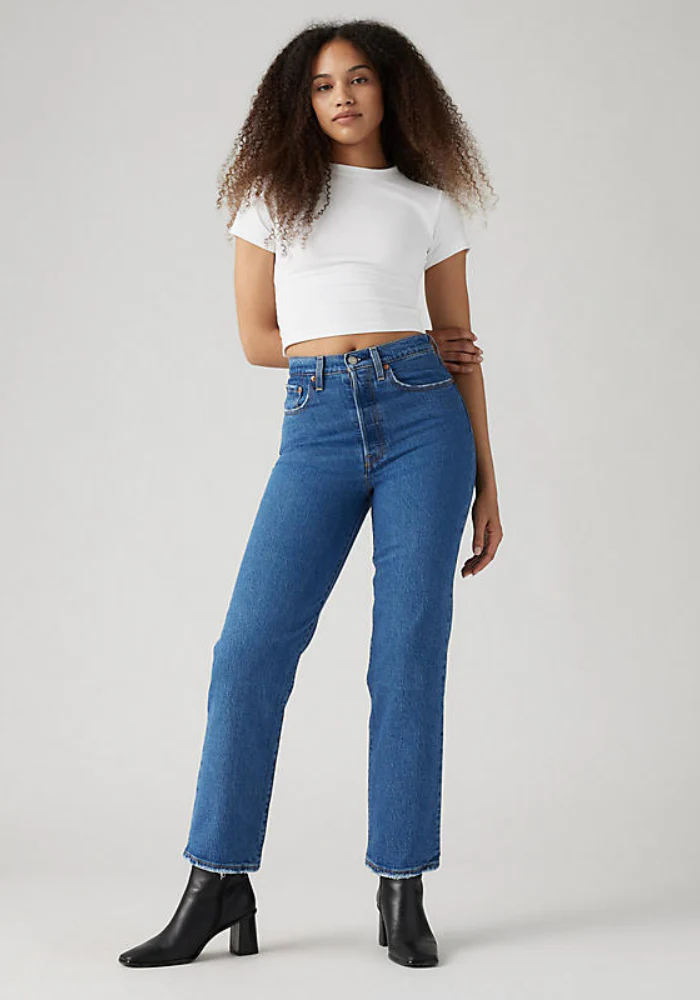 Jean Ribcage L29 couleur jazz pop, en coupe droite effet usé sur le bas de l’ourlet.