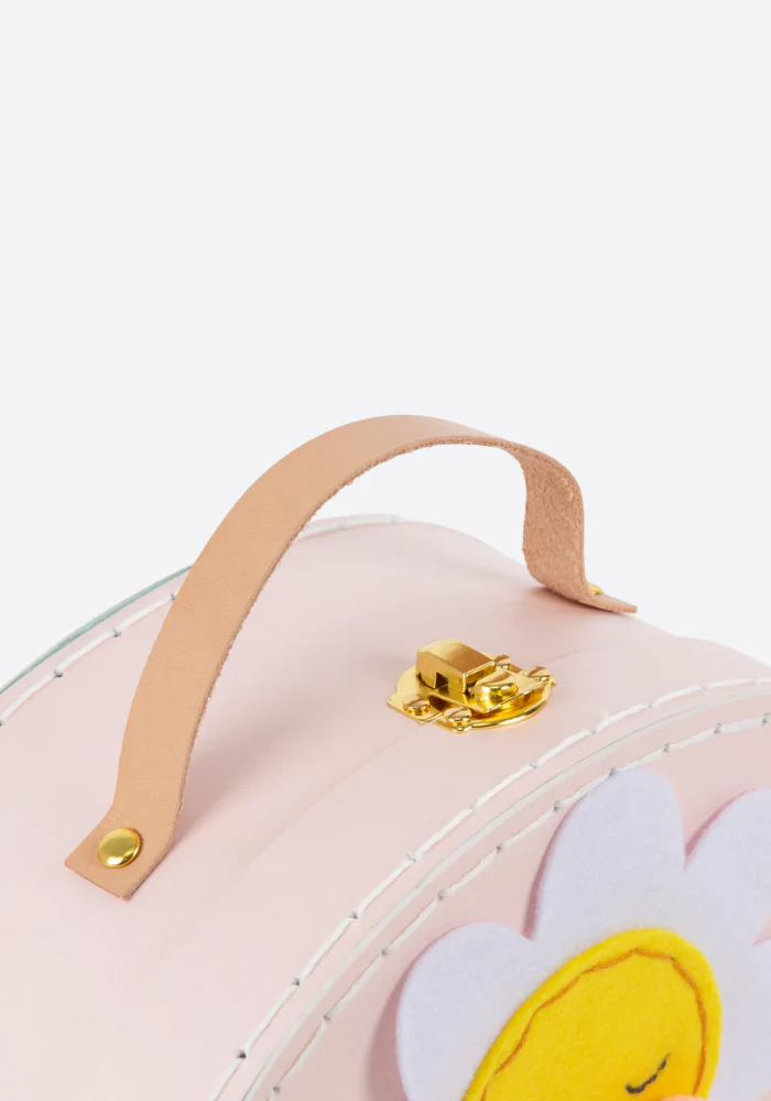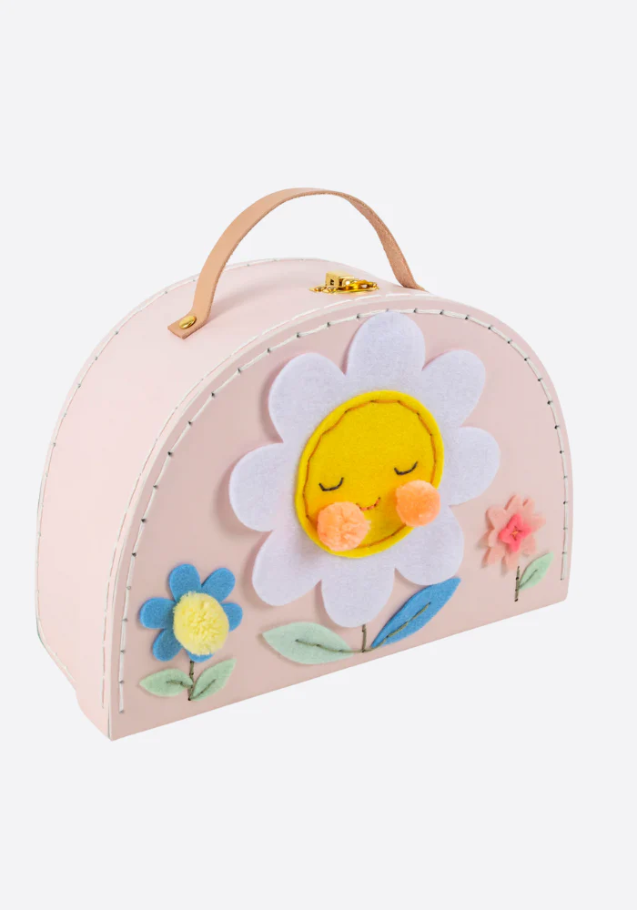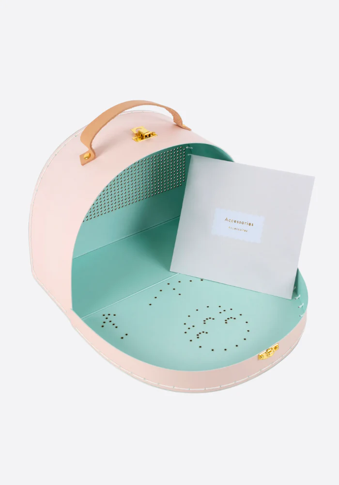 - Valisette en carton et papier artistique avec poignée en simili cuir et fermoir en laiton