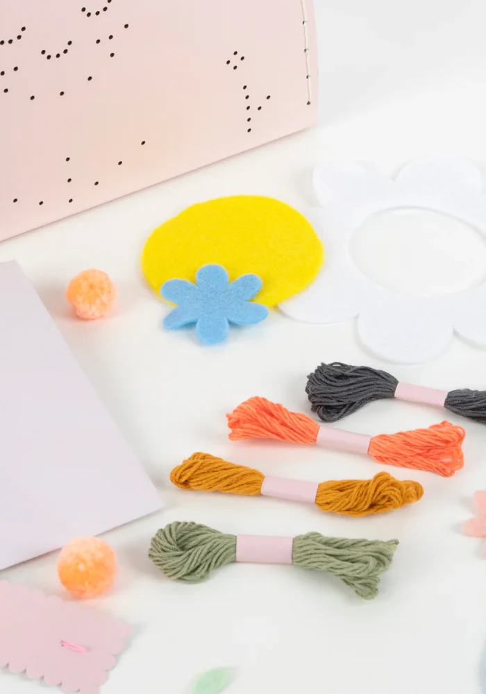 - Pièces en feutrine (6 couleurs) et fils à broder (4 couleurs)