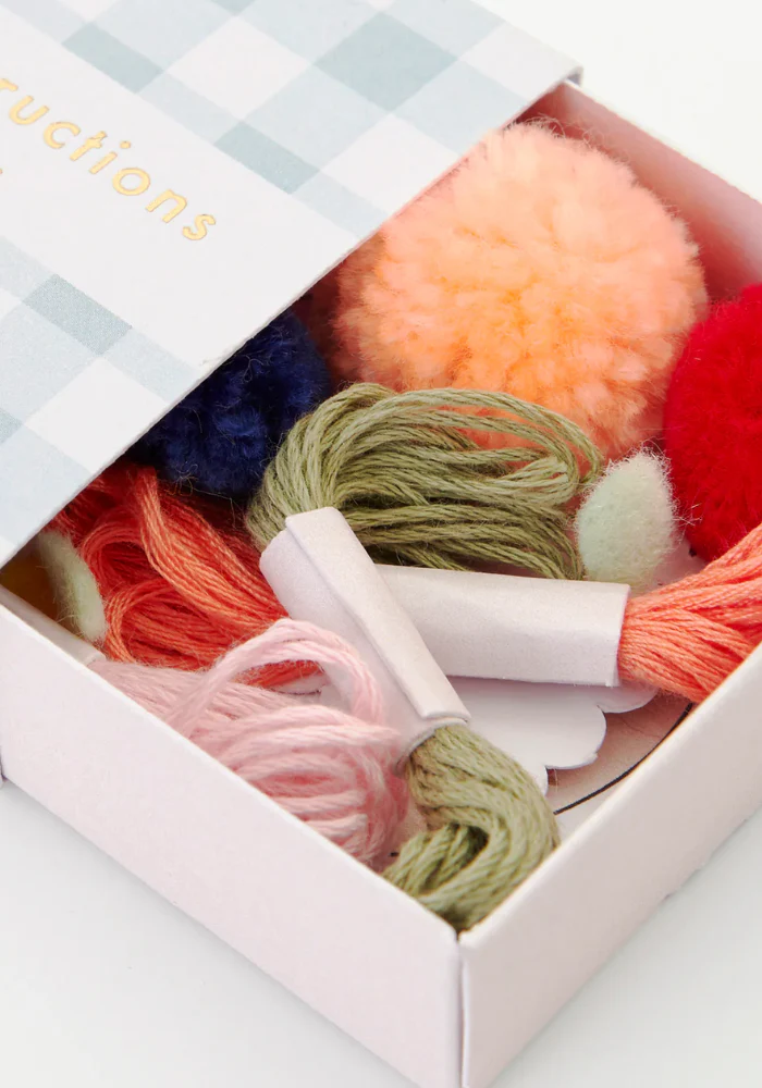 - Fils à broder rose, pêche et vert + 3 pompons décoratifs