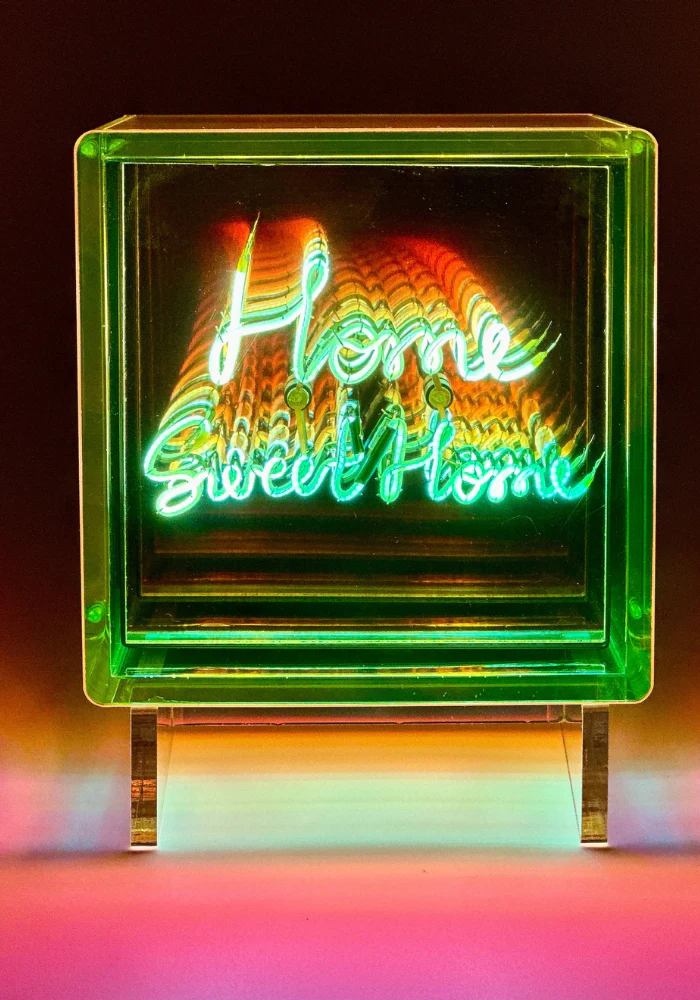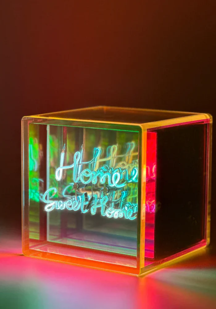 Lampe Cube Message In The Box carrée en plexiglass multicolore et rechargeable.