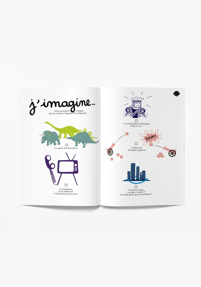 On en apprend des choses avec les grand-parents ! Voici un livre Minus à compléter à deux pour explorer ce lien unique, complice, ludique, tendre, structurant qui souvent unit un enfant à son super Papi, sa grand-mère chérie… Pour se raconter plein d’histoires de famille, cultiver la relation et se souvenir aussi quand on sera grand !