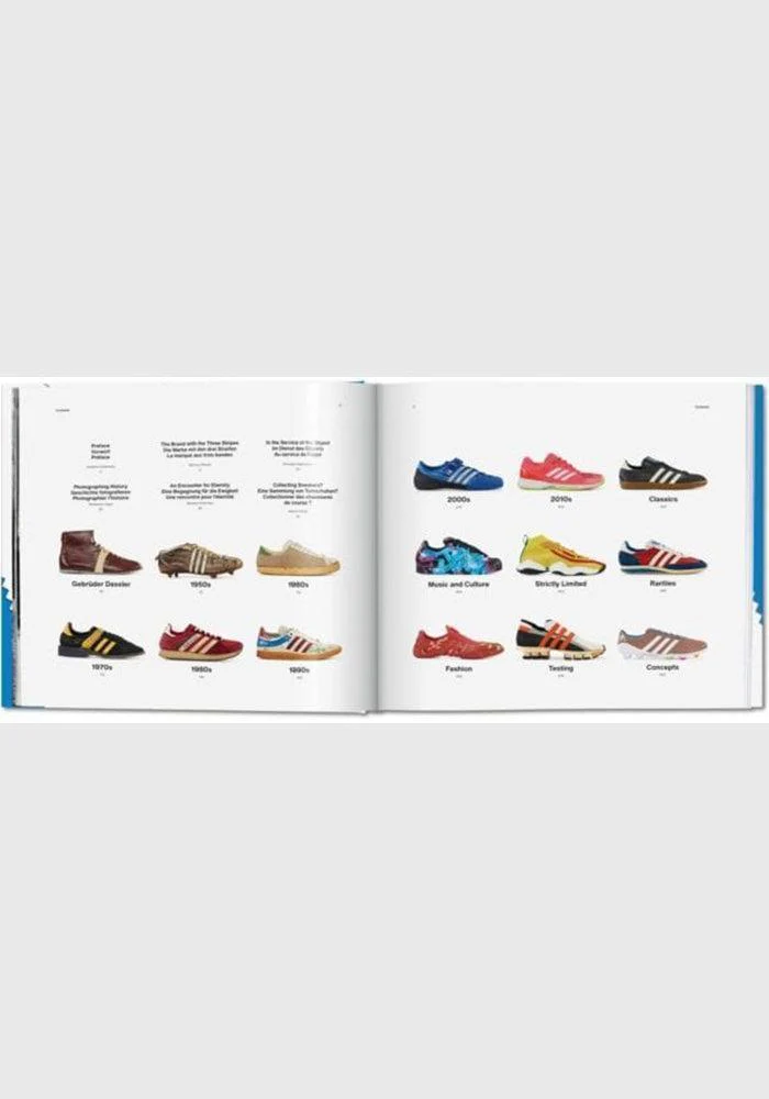 Ce livre présente l’histoire d’Adidas à travers 357 paires de chaussures, dont des originaux uniques, des modèles vintage, des prototypes inédits et des créations de Stella McCartney, Yohji Yamamoto, etc.