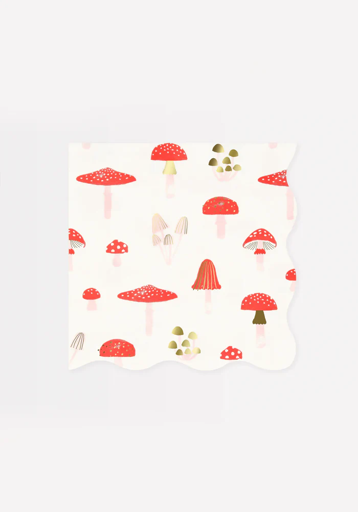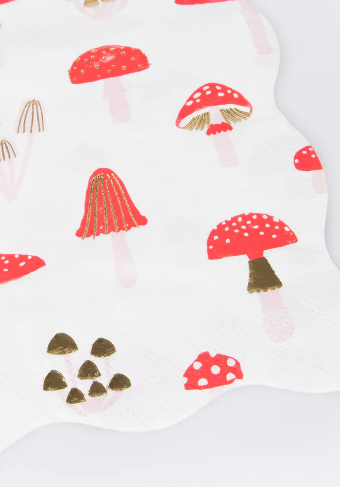 Lot de 16 serviettes grands modèles avec des champignons et dorures.