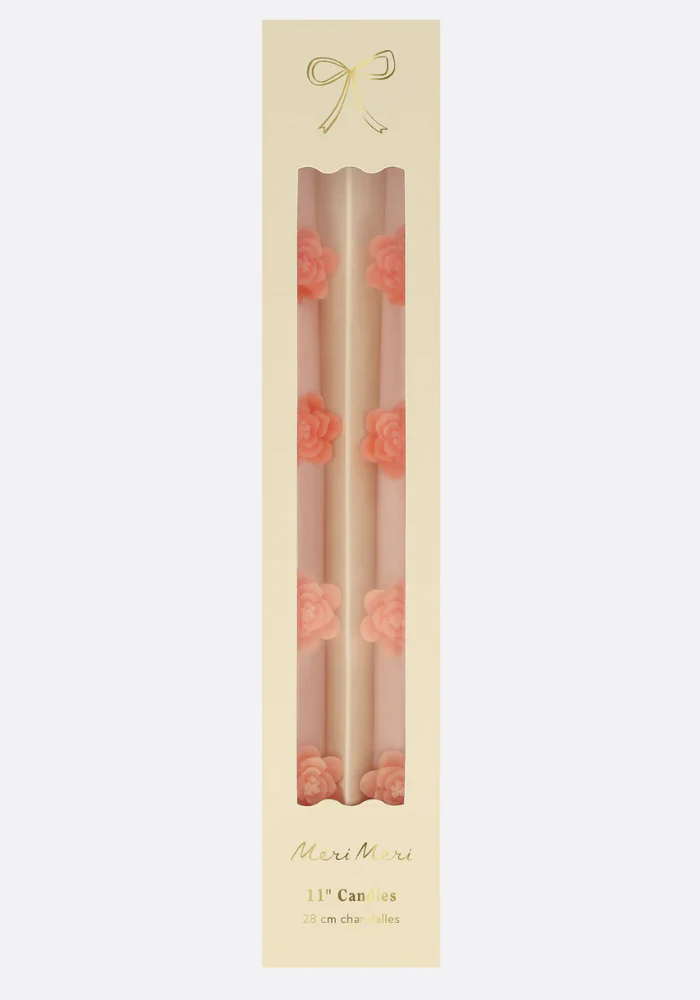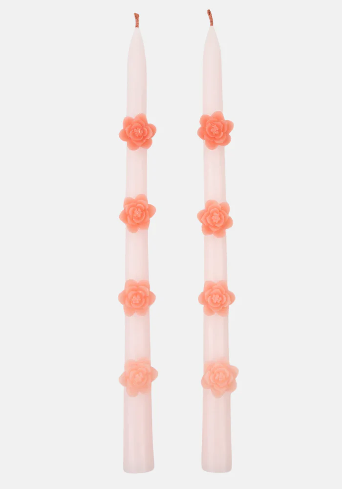 Lot de 2 bougies en cierges avec des fleurs en 3d dans les tons pêche et rose. Caractéristiques : Bougies effilées en cire Fleurs en cire colorée dans les tons pêche et rose Mèches rose pâle Durée de combustion : 5 heures Sans parfum Lot de 2 Dimensions du produit : 279 mm