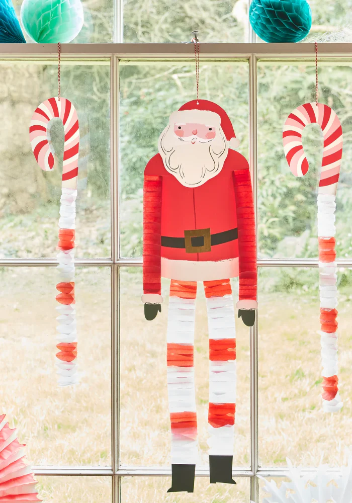 - 4 décorations en papier : 1 Père Noël, 1 renne, 2 cannes de bonbons