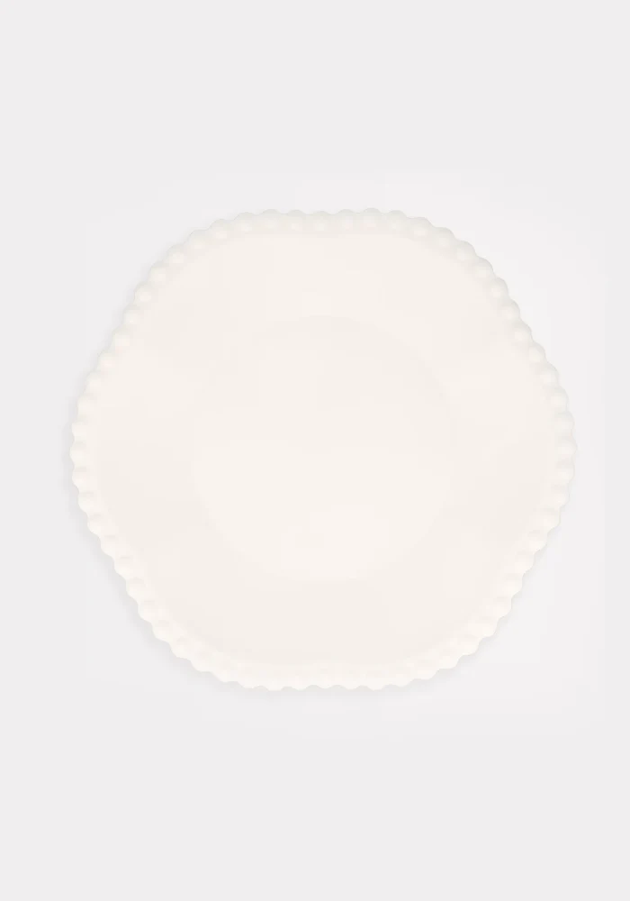 Lot de 8 assiettes blanches avec le contour à pois à usage unique.