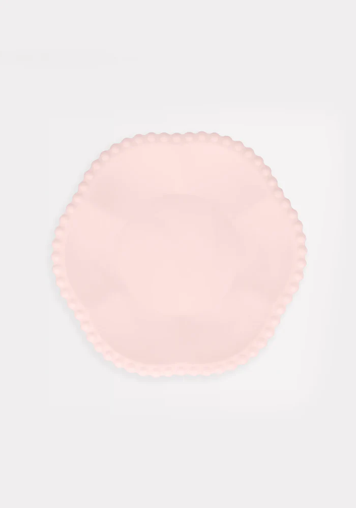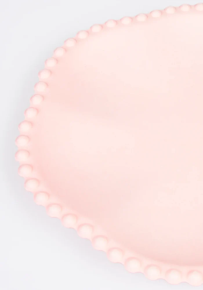 Lot de 8 petites assiettes roses avec le contour à pois à usage unique.