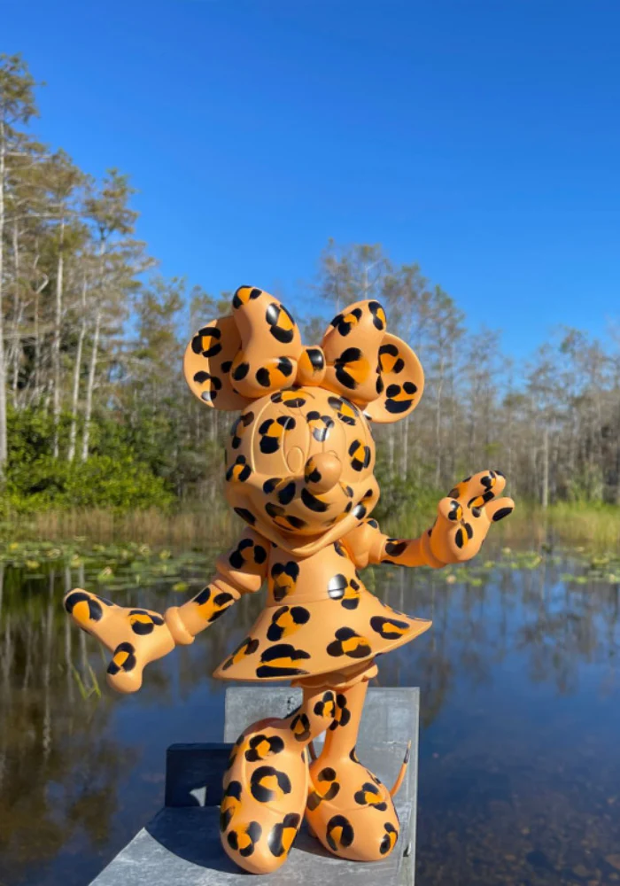 Figurine Minnie Welcome motif léopard soft touch. Minnie est debout et se déhanche en souriant !