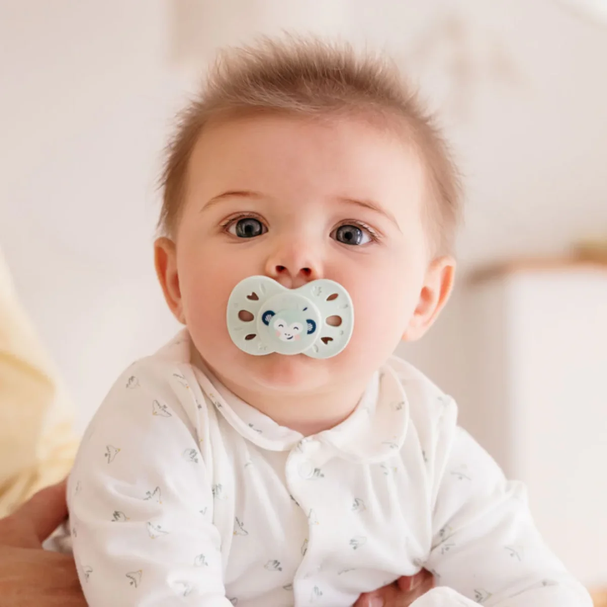 Nos sucettes en silicone extra-fines sont dotées d’une base 40% plus fine* que la moyenne des sucettes présentes sur le marché.