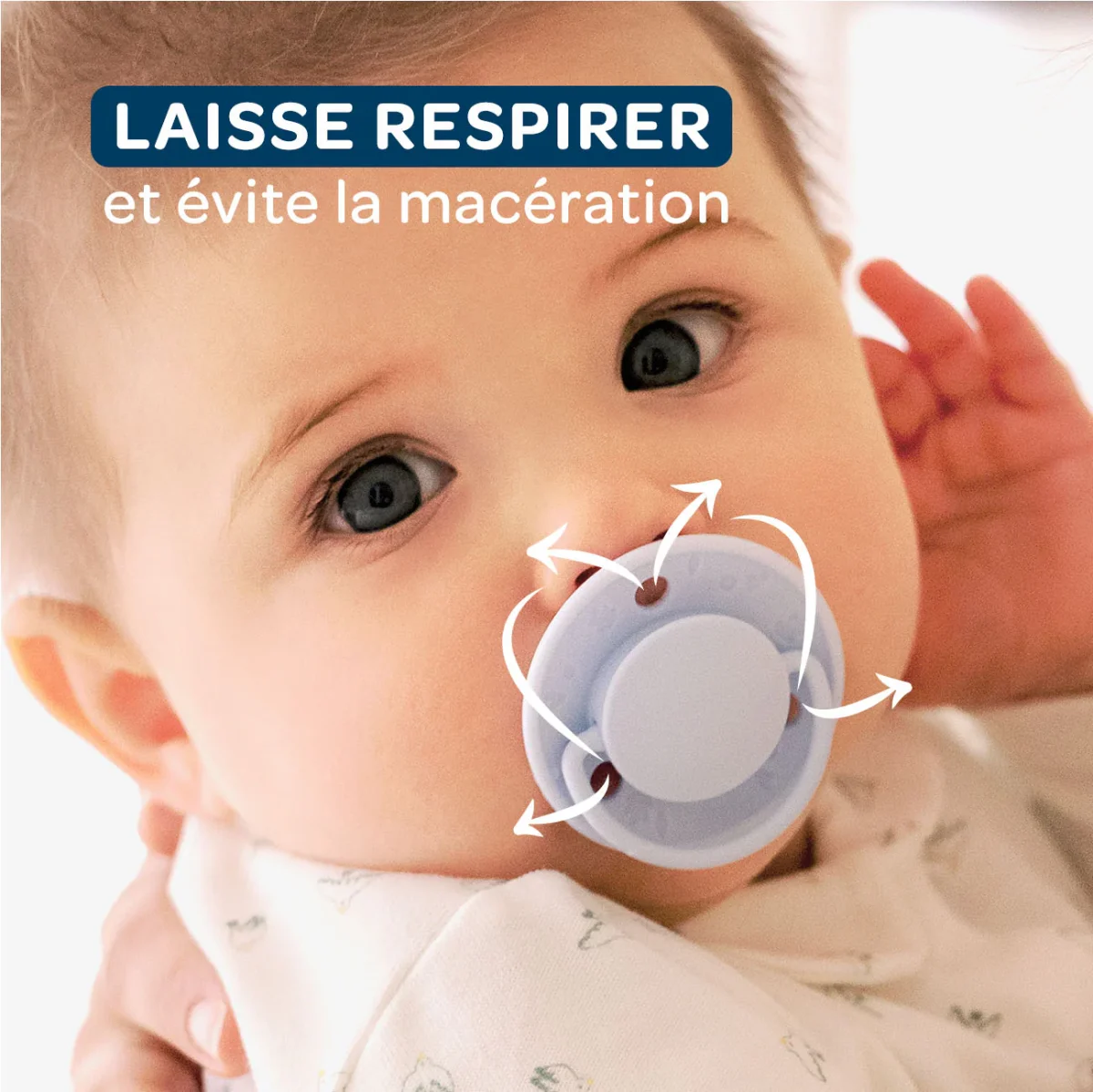 Nos sucettes en caoutchouc naturel extra-fines sont dotées d’une base 25% plus fine* que la moyenne des sucettes présentes sur le marché.