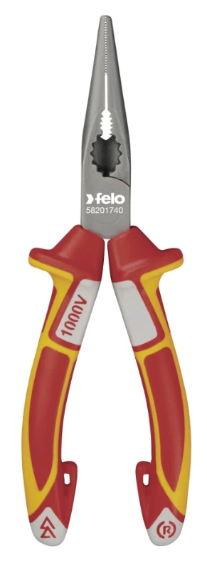 Pince FELO en acier forgé chromé matte pour une protection contre la corrosion. Finition VDE, certifié IEC et label GS pour les tests qualité. Dureté de tranchant HRC 57/59.