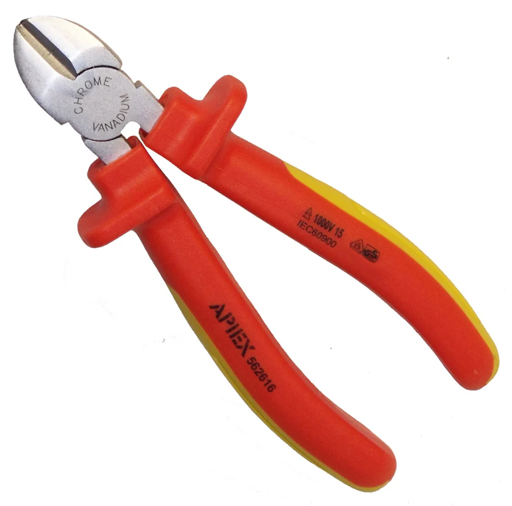 Pince coupante en acier électrique au vanadium forgé et trempé à l’huile en plusieurs phases. Poignée isolée par gaine bi-matière, jusqu’à 1000 Volts.