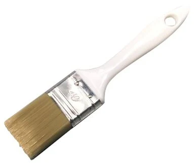 Pinceau plat polyvalent en poils fibre, manche en polypropylène et virole nickelée.