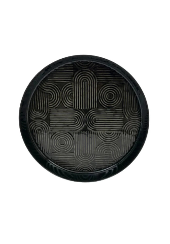 Plateau Molitor moyen modèle en métal peint, orné de motifs géométriques et doté de bords hauts.