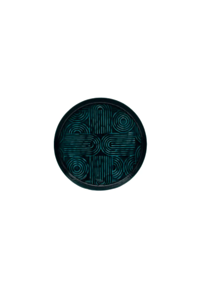 Plateau Molitor petit modèle en métal peint, décoré de motifs géométriques et pourvu de bords hauts.