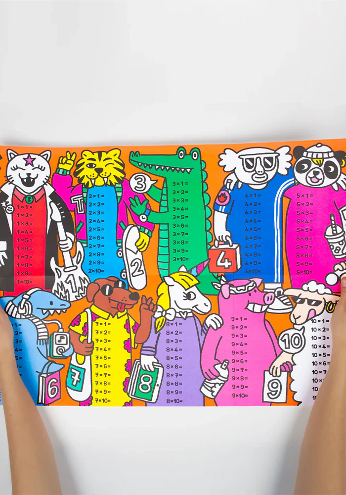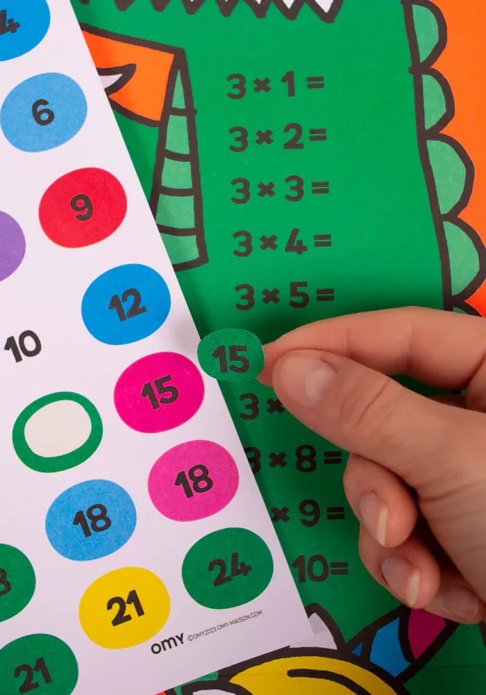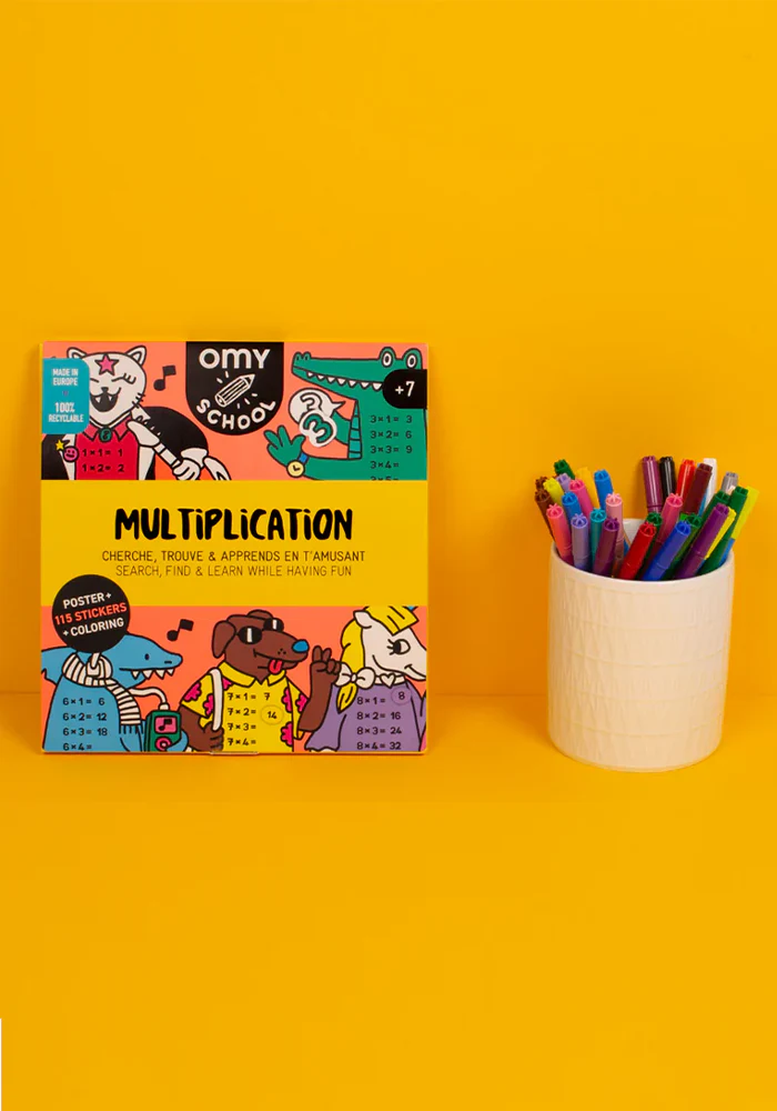 Poster à colorier avec des multiplications et des stickers. Caractéristiques : Contenu : 1 poster + 60 stickers + fiche d’instruction Format déplié : 68 x 48 cm Composition : 100% papier Âge : Dès 7 ans Petit + : Activité en autonomieStimule la mémoireDéveloppe la concentrationFavorise le plaisir d’apprendreActivité calme et sans écran