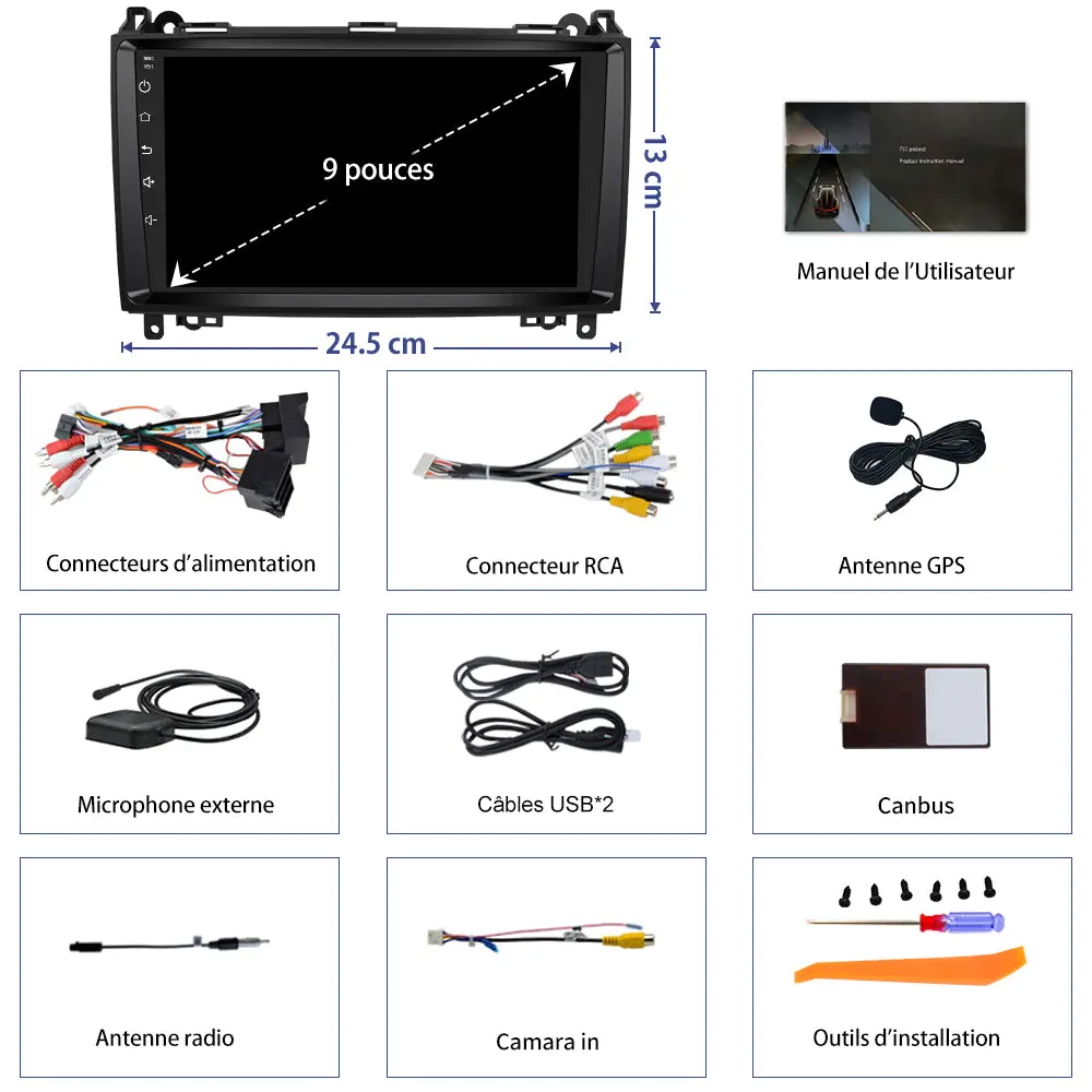 Radio Android pour Benz intégrée Carplay/Android Auto SWC BT AM/FM