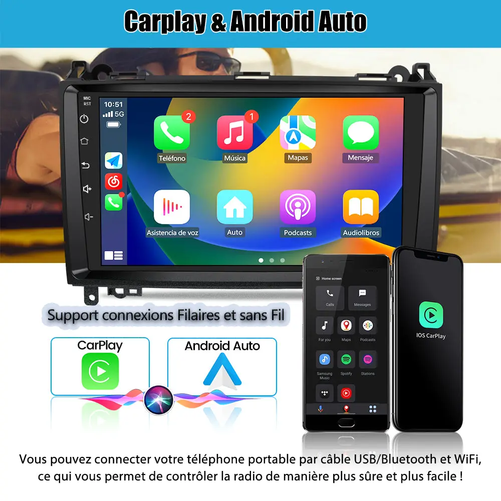Radio Android Pour Benz intégrée Carplay/Android Auto SWC BT AM/FM