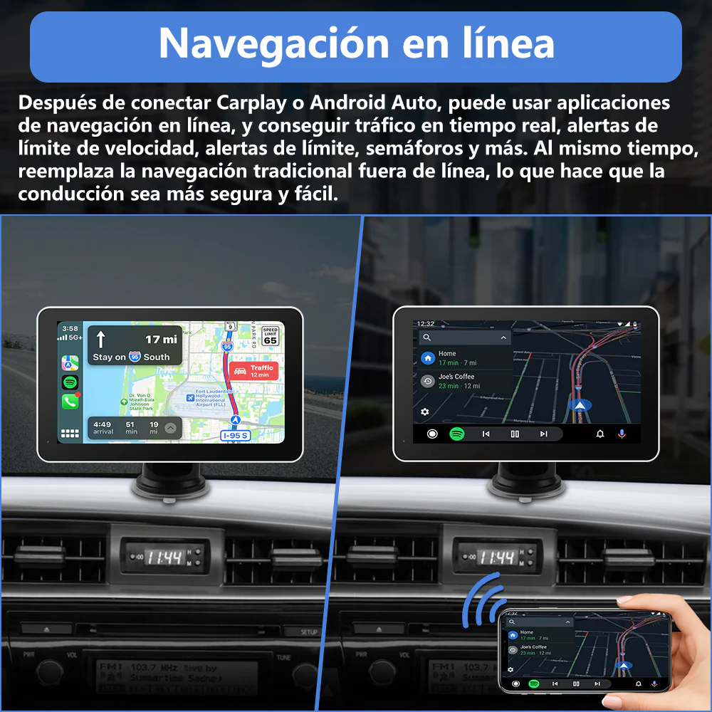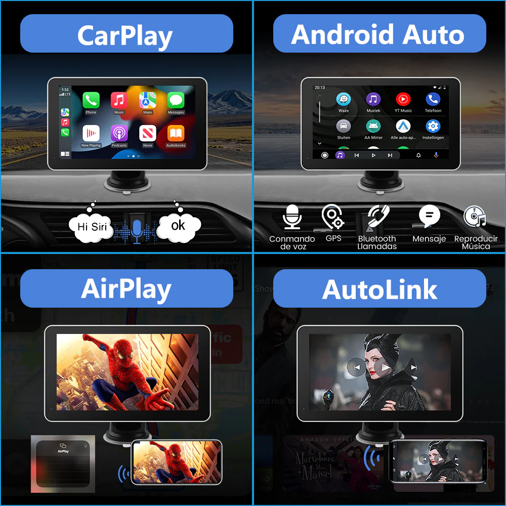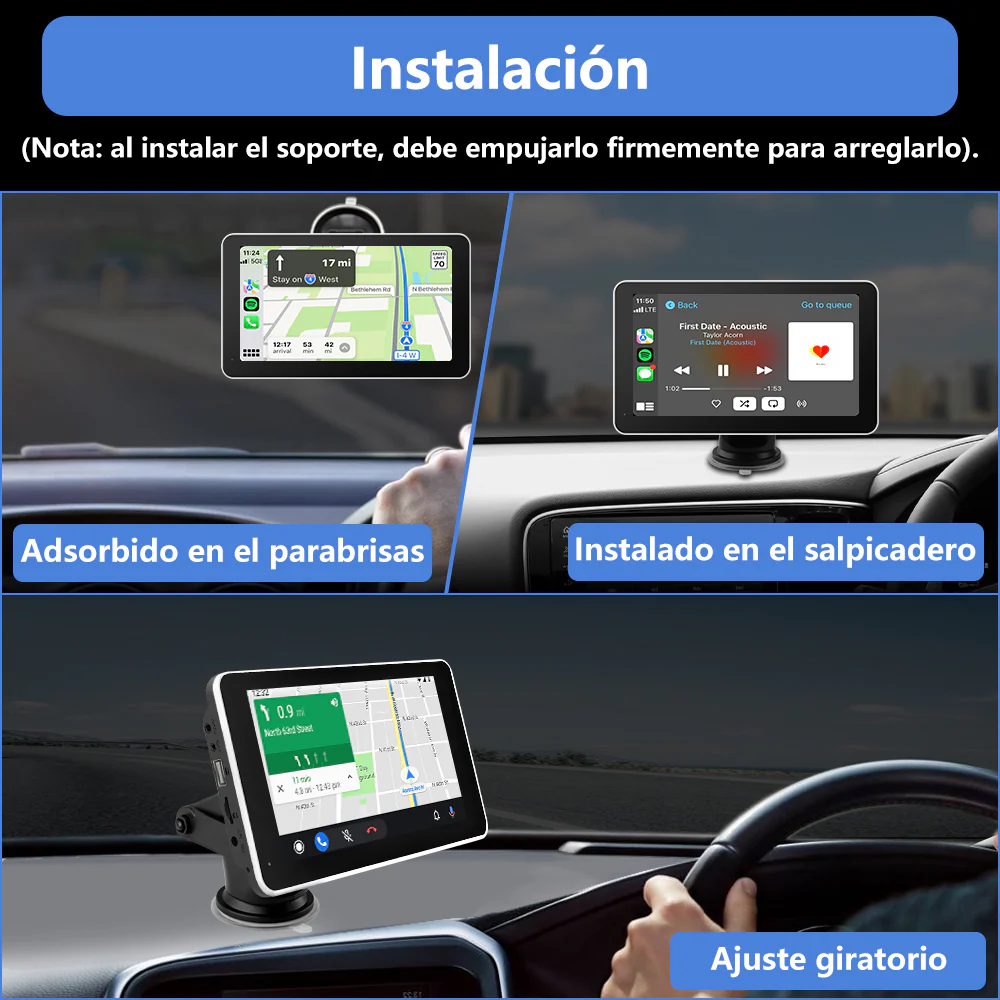 Radio portátil de 7 pulgadas conCarplay & Android AutoAdecuado para coches de 12-24V,camiones, caravanas, furgonetas. autocaravanas,remolques, etc.