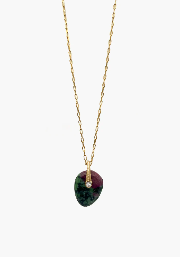 Sautoir Axel avec une chaine en plaqué or et un pendentif pierre oval facetté.