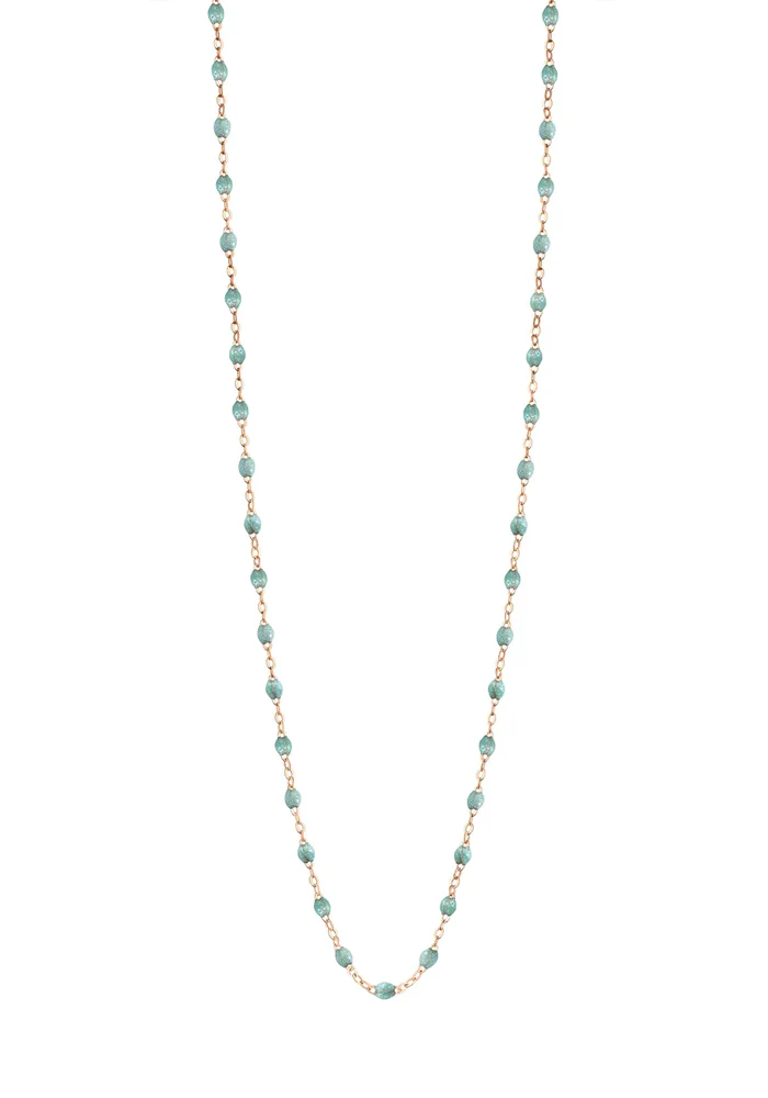 Sautoir classique Gigi en 60cm or rose et résines Bleu Glacier.
