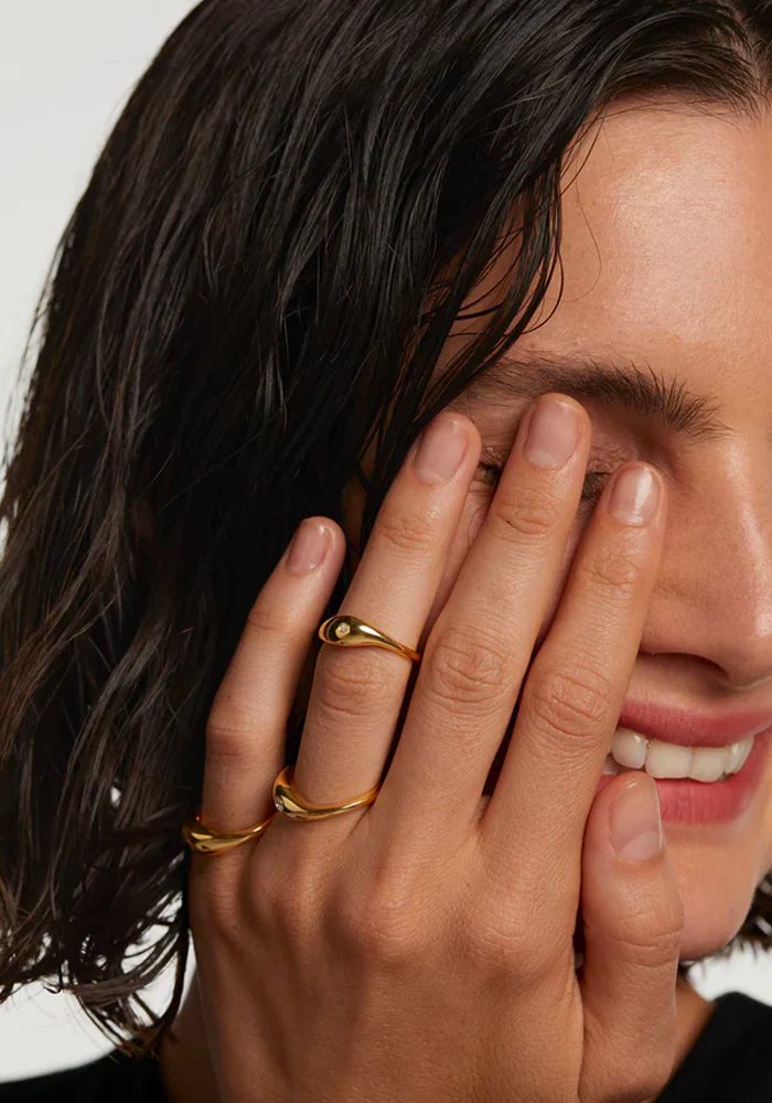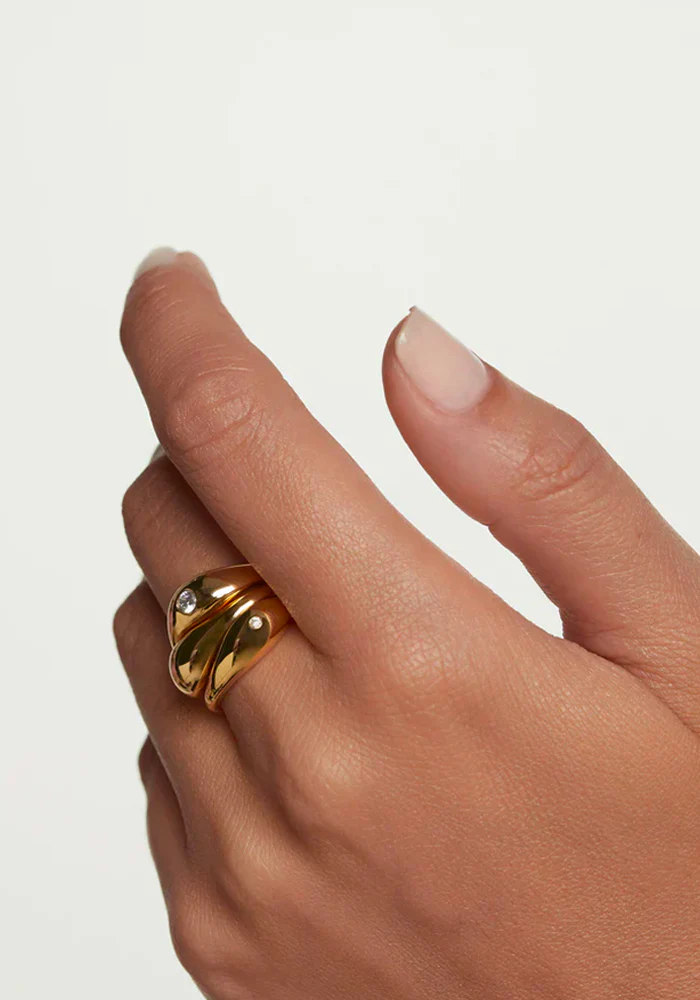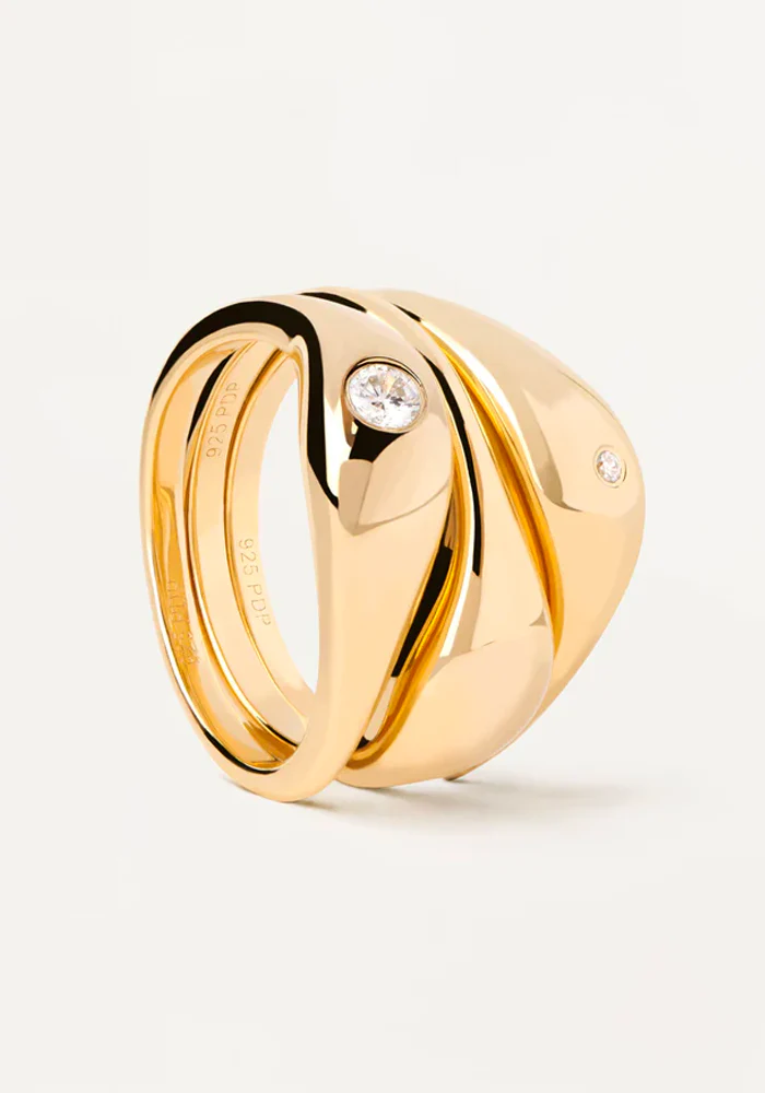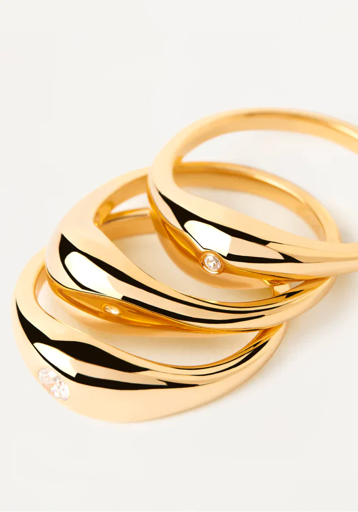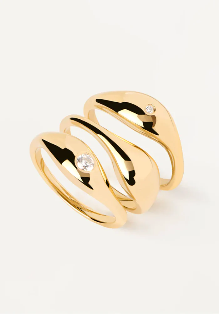 Set de 3 bagues Sugar en vermeil type anneaux bombés dont deux avec un zircon.