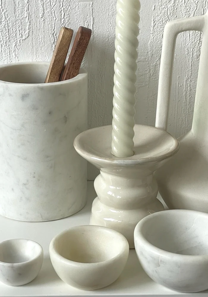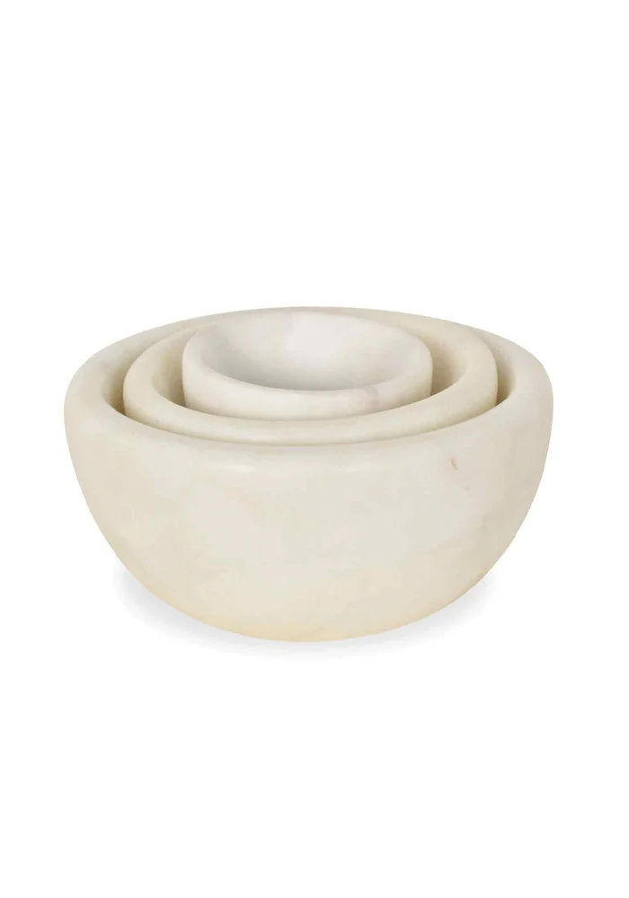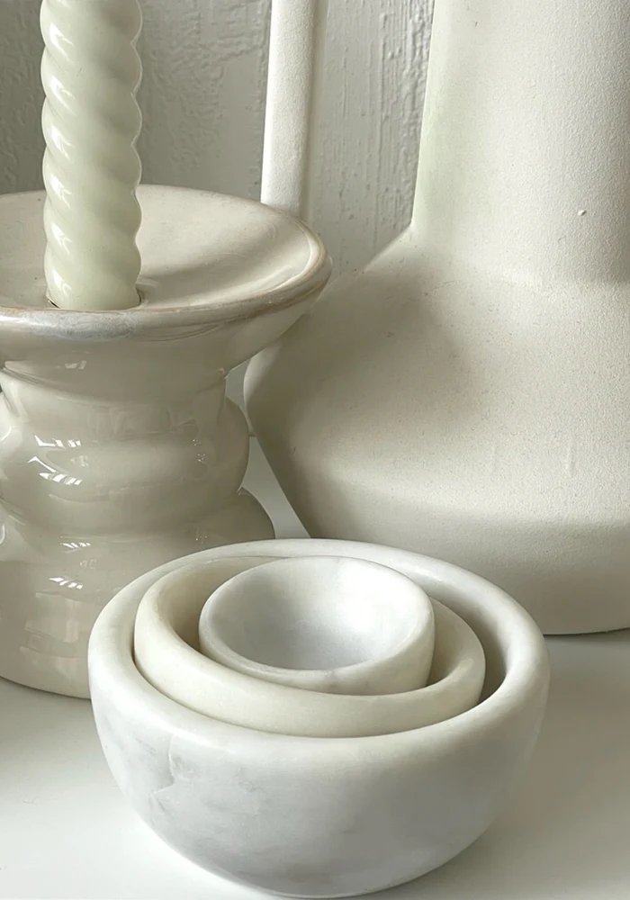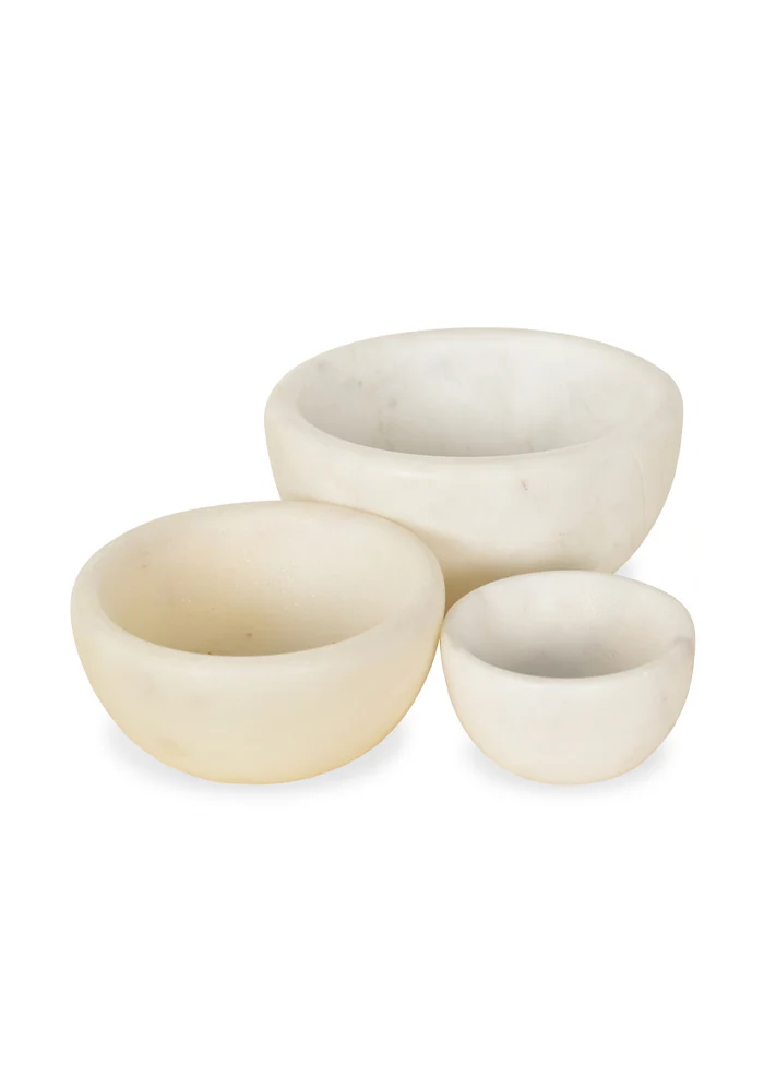 Set de 3 mini coupelles en marbre blanc.
