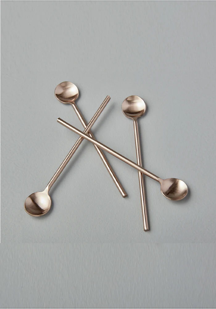 Set de 4 petites cuillères en inox rose.