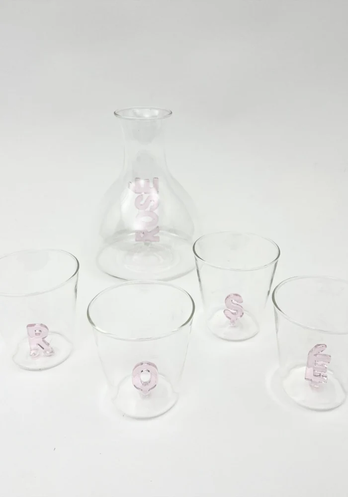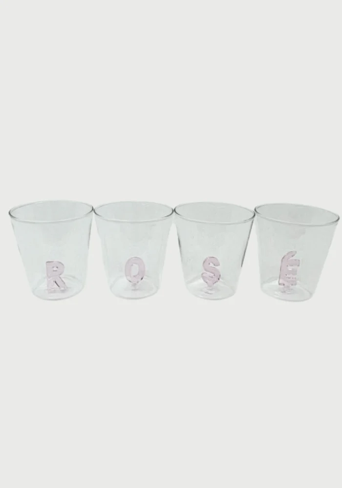 Set de 4 verres en verre transparent, ornés de l’inscription Rose en relief 3D.