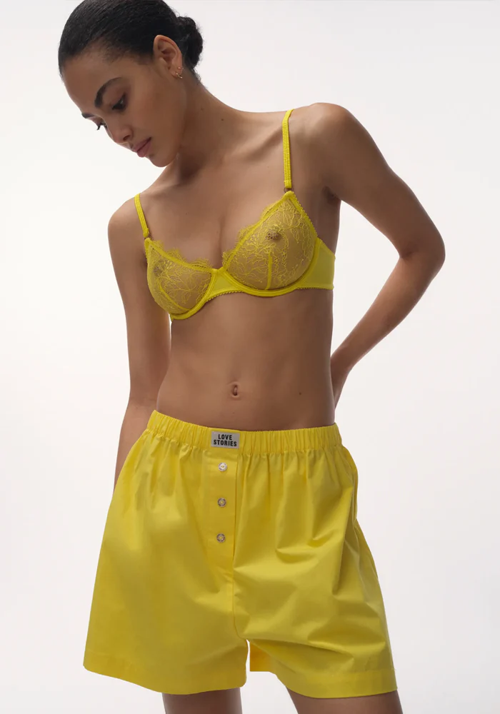 Short James style caleçon d’homme avec 3 boutons à l’avant et le logo Love Stories.