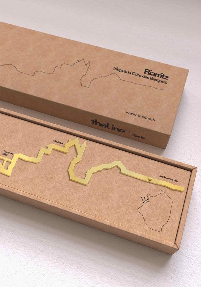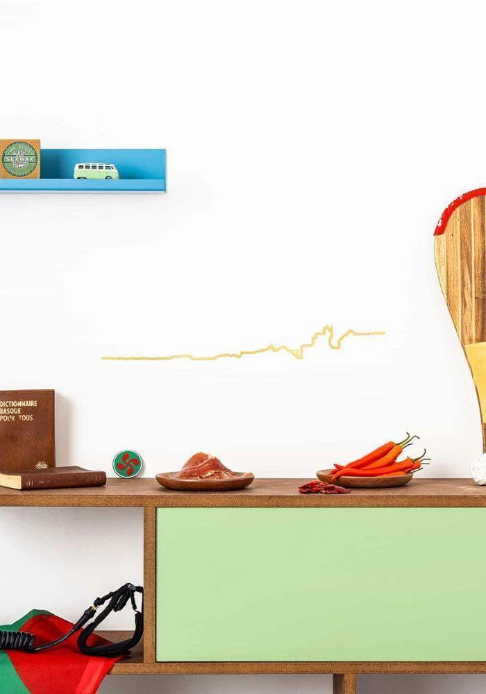 Skyline murale Biarritz en acier doré de 50cm de long. On y voit la passerelle Eiffel, la Villa Belza et le Rocher de la Vierge.