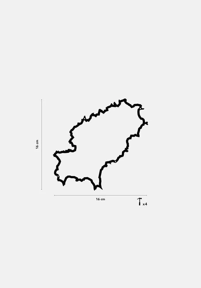 Silhouette murale de Ibiza vu du ciel en acier noir. On y voit d’Ouest en Est et du Nord au Sud, entre autre : Es Cubells, Ibiza, Es Canar, Es Figueral et le Port de Sant Miquel. Caractéristiques : Dimensions : 16 x 16 cm Epaisseur : 1,5 mm Matériau : Acier A fixer au […]