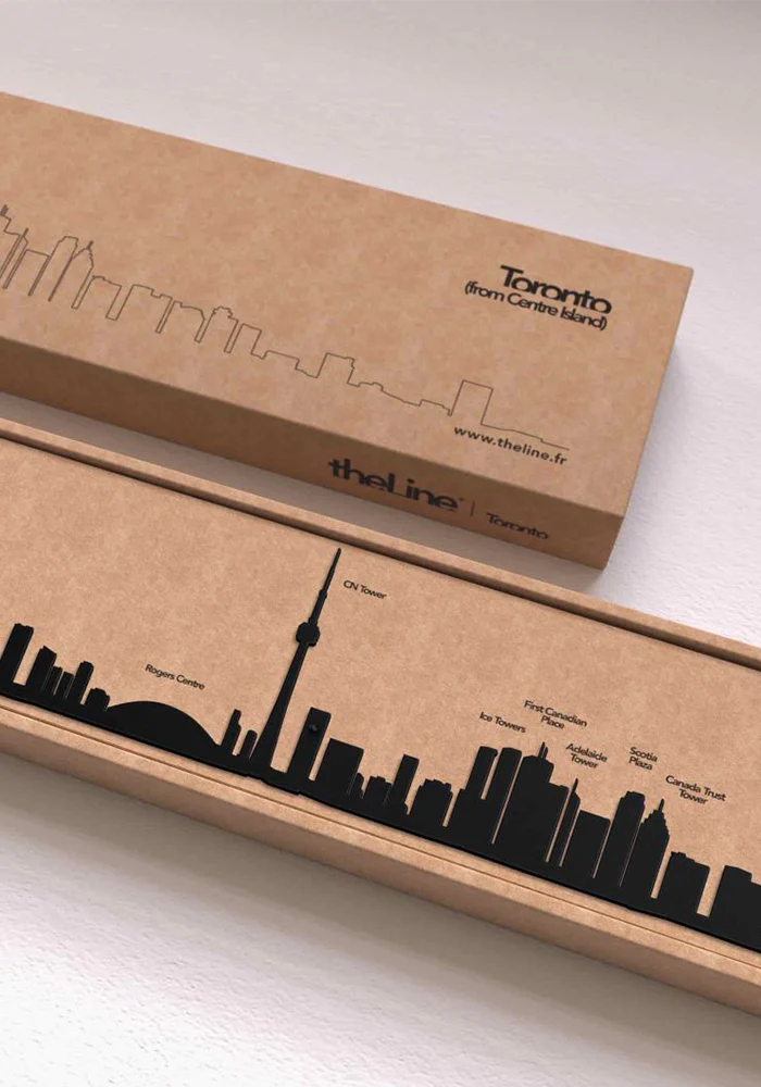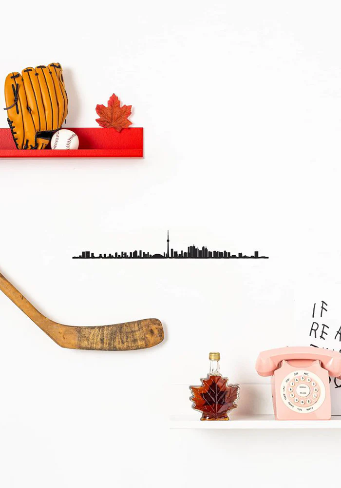 Skyline murale Toronto de 50 cm en acier noir. Une représentation la silhouette de Toronto depuis Center Island. On y voit le First Canadian Place, le Centre Rogers stadium et la CN Tower.