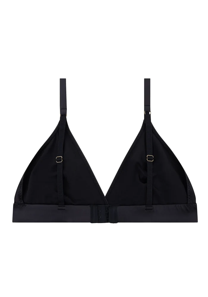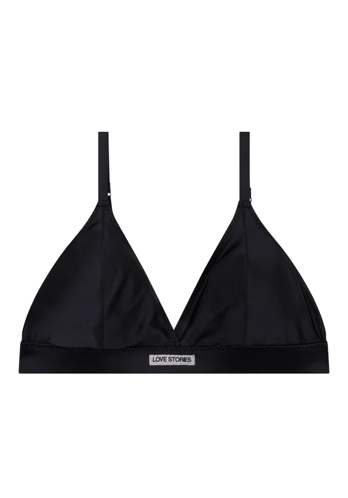 Soutien-gorge Darling triangulaire noir avec un élastique large sur le bas.