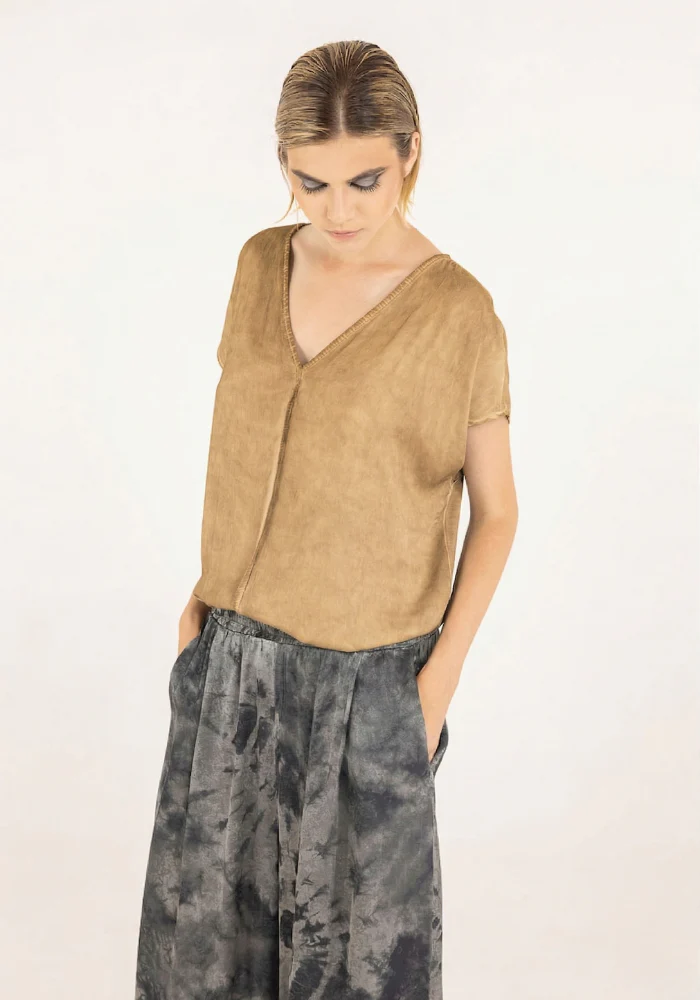 T-Shirt Manches Courtes Col V Tabacco