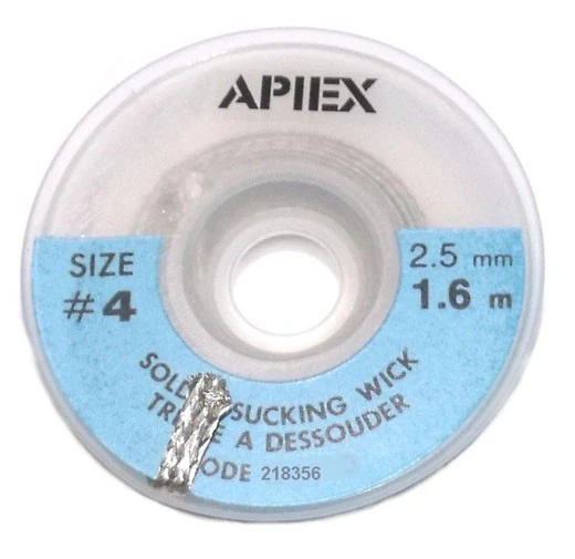 Tresse à dessouder très absorbante en bobine de 1,6 m Produits disponibles : – Dimensions 1,5 mm réf. 218355– Dimensions 1,6 m x 2,5 mm réf. 218356