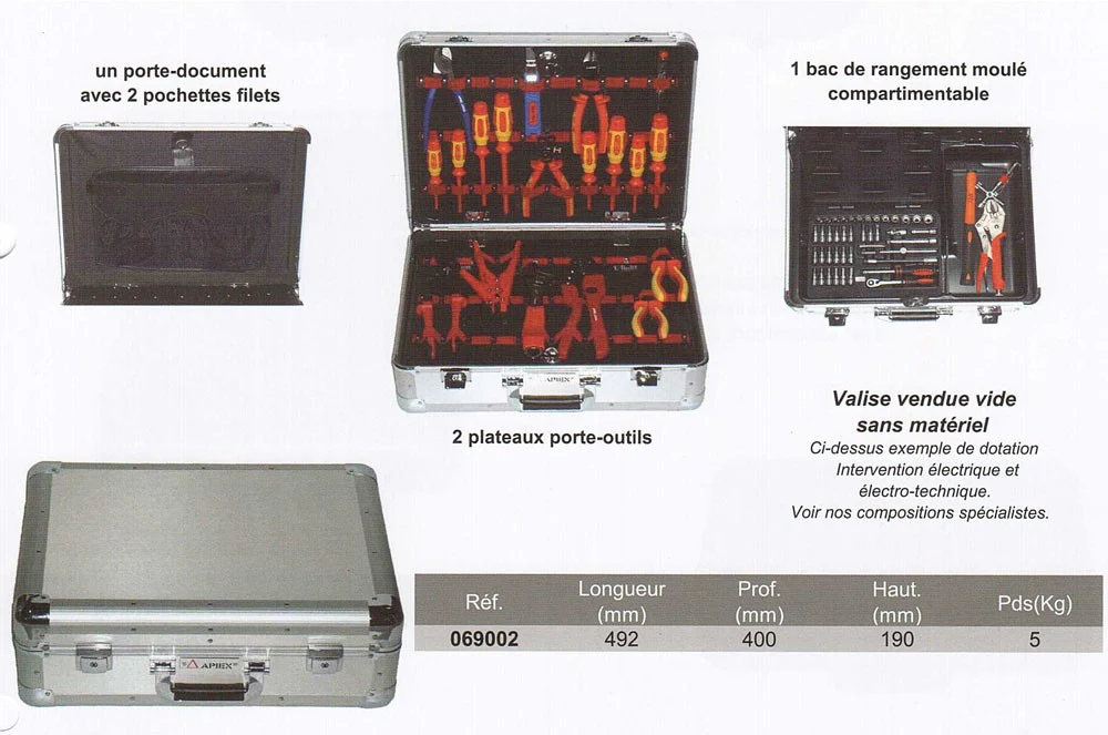 Valise porte outils en aluminium 492 x 400 x 190 mm gamme professionnelle