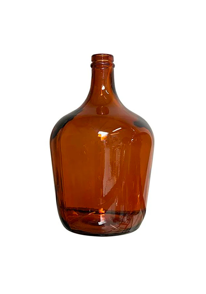 Vase Dame Jeanne avec un verre ambré. Caractéristiques : Dimensions : 30 x 18 cm Verre ambré Forme de bouteille
