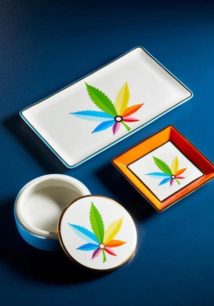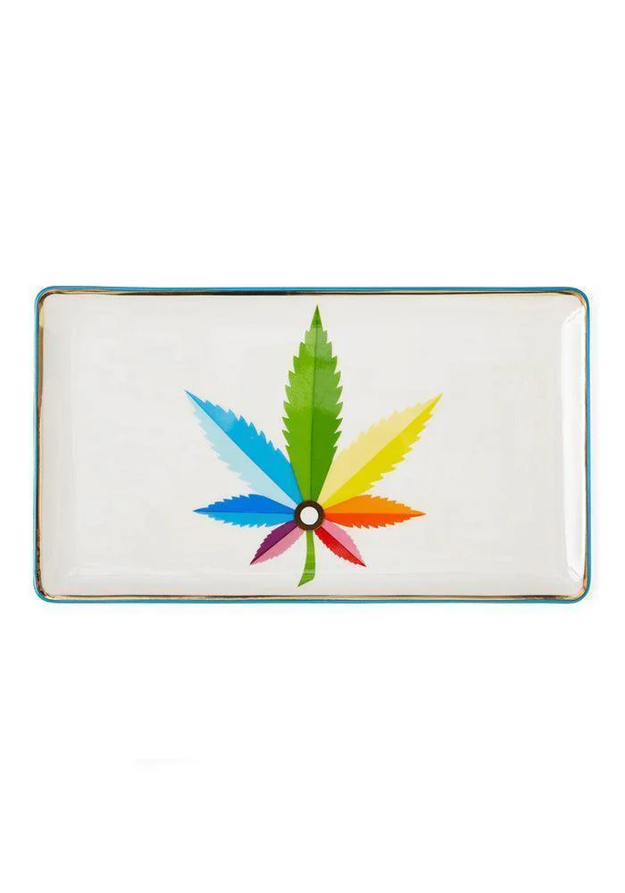 vide-poche Sinsemilla rectangulaire en porcelaine avec des feuilles de canabis multicolores.