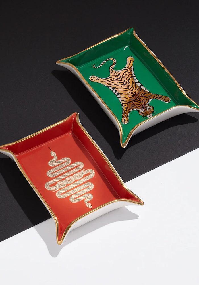 Vide poche rectangulaire Snake Valet en porcelaine orange avec les angles pincés. Caractéristiques : Matériau : Porcelaine cuite à feu vif avec des accents de couleur et d’or Dimensions : 17,7 x 12,7 x 2,5 cm Conseil d’entretien : Les rayures de surface se produiront avec l’utilisation au fil du temps Dépoussiérer avec un chiffon […]
